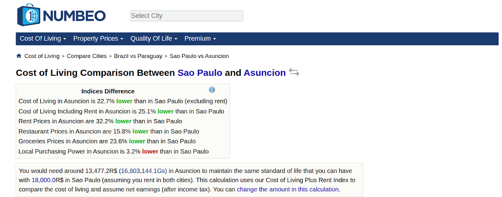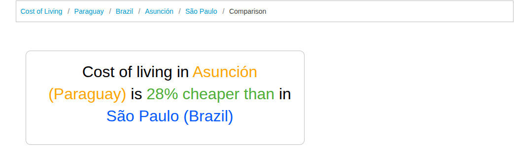 Estima-se que Assunção tenha um custo de vida 20% a 30% menor do que São Paulo, baseado em fontes do Numbeo, Expatisan e outros sites - além da nossa experiência própria e dos nossos clientes aqui na Settee.